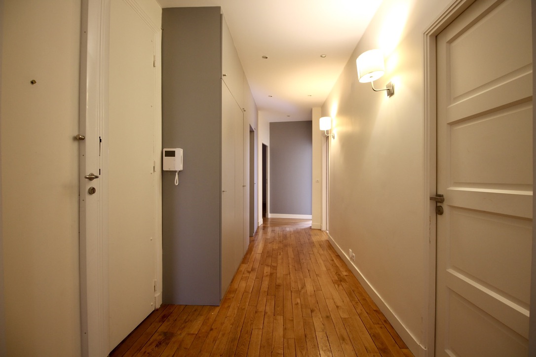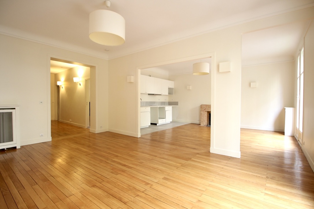Saint James/Lonchamp, au calme. Dans un bel immeuble 30, cet appartement 4 pièces d’une surface de 103m2 offre un agencement agréable: entrée avec grand dressing, un beau double séjour de 45m2 avec cuisine américaine, 3 chambres dont une avec dressing, une salle de douche, une salle de bain. Une cave et une place de parking en sous-sol. Tous commerces à 2min, Métro Pont de Neuilly à 4min.