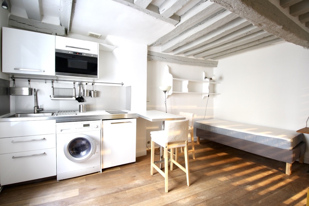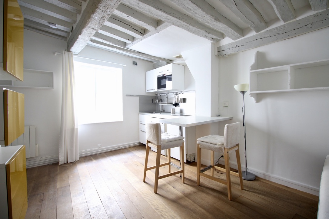 Panthéon – sectorisé Henri IV, au calme complet. Au 2nd étage d’un immeuble ancien, ce studio lumineux de 19,73 m2 Loi Carrez a fait l’objet d’une belle rénovation et offre un espace optimisé. Séjour avec cuisine aménagée et équipée, salle d’eau avec douche et toilettes. Un placard de rangement à l’entrée. Petite cave en sous sol.