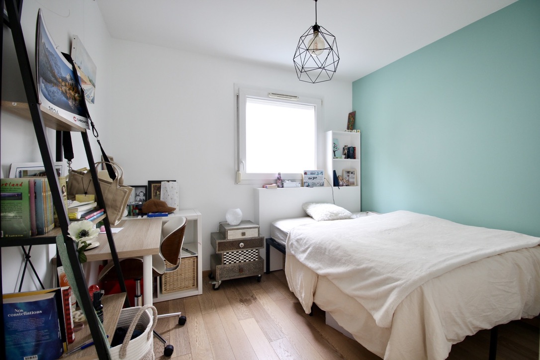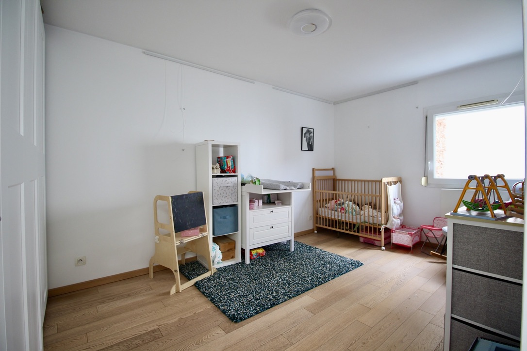 Métro Léo Lagrange à 3min, au calme complet! Cette maison contemporaine de 106m2 Carrez + 56m2 de jardin offre des prestations soignées et la lumière d’un plein Sud. En rez-de-jardin: Entrée, puis le vaste séjour de plus de 50m2 m2 avec une cuisine ouverte aménagée s’ouvre par de larges baies vitrées sur la terrasse et le jardin; toilettes. A l’étage, en pièce palière: un bureau sur-mesures sous un puit de lumière, trois chambres avec penderies aménagées, une grande salle de douche, toilettes. Une place de parking en sous-sol à proximité. Ecoles et commerces à proximité immédiate. DPE C.